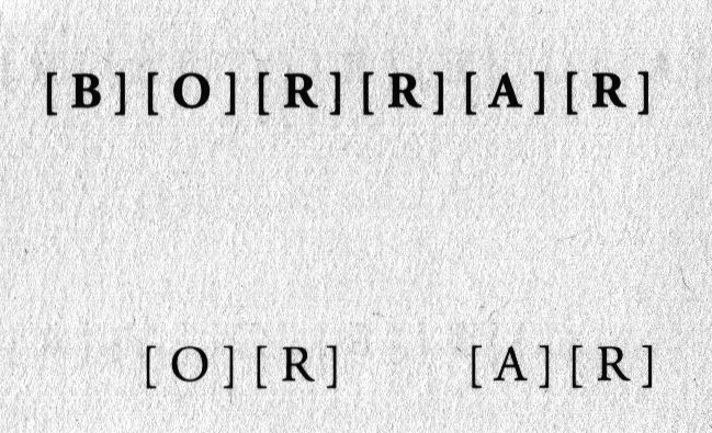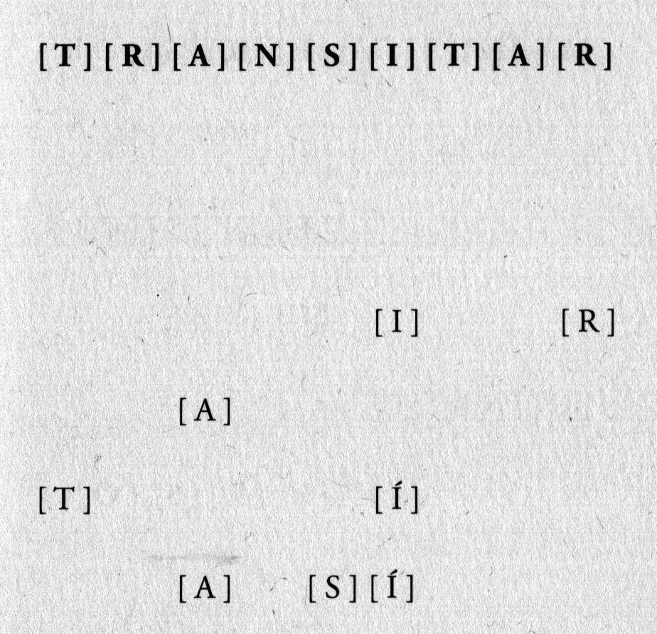 Bajo estas consideraciones, podemos leer [E][S][C][A][L][A][S] (Mangos de Hacha, 2011) de Martín Gubbins como un libro que hurga en la superficie de las palabras para descubrir un sentido oculto; más que experimental, su poesía es radical en el sentido que le da Perloff al término: la vuelta a un origen, no adánico, sino semiótico del lenguaje. El libro está compuesto de tres series de poemas: “Abecedario”, “Eduardo Scala” y “Calendario”; cada uno de los poemas es una palabra dividida en casillas (una casilla, una letra) después de la cual se colocan otras palabras desprendidas de la primera