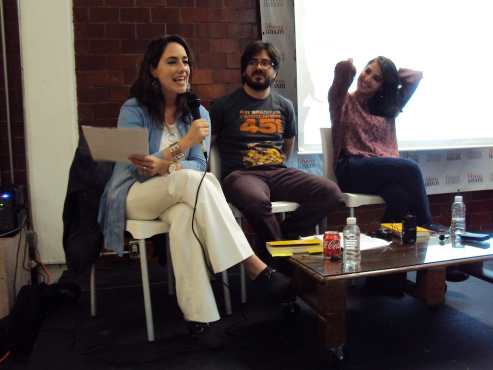 maría andre giovine, juan pablo anaya y cinthya garcía leyva en textualidades múltilples. foto-susana gonzález aktories